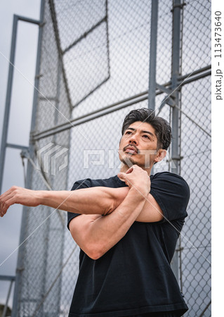 一個男人在戶外做熱身運動