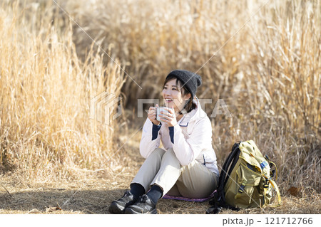 女人享受遠足