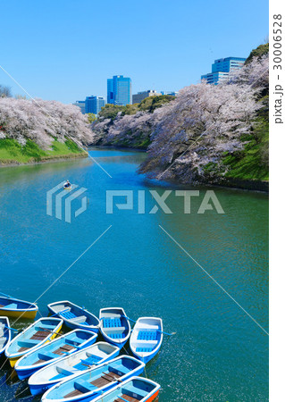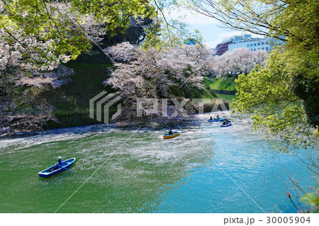 在Chidorigafuchi盛開的櫻花盛開的休閒船
