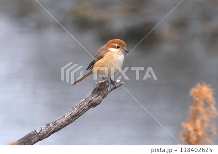 潘帕斯草在風中搖曳,小猛禽伯勞鳥