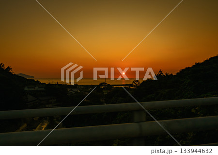 南紀白濱中秋晚景:蔚藍的天空與地平線附近的夕陽形成美麗的對比