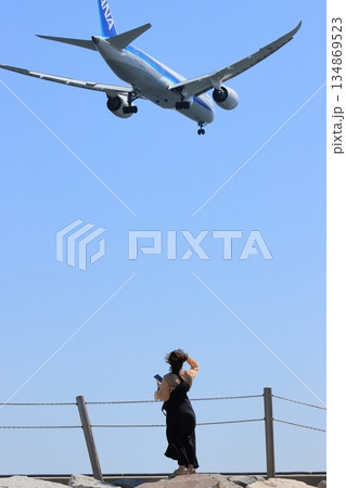 大阪府豐中市:黃昏時分,突如其來的陣雨襲來,一架準備降落的客機與千里川堤壩