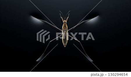 A Top Down Macro Shot of a Water Strider on a Black Background
