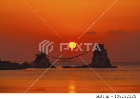 連接大分縣西伯市豐後二見浦夫婦岩的大石繩和新年第一縷日出