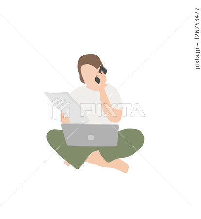 在辦公室工作時接電話的女商人【人物矢量圖素材】