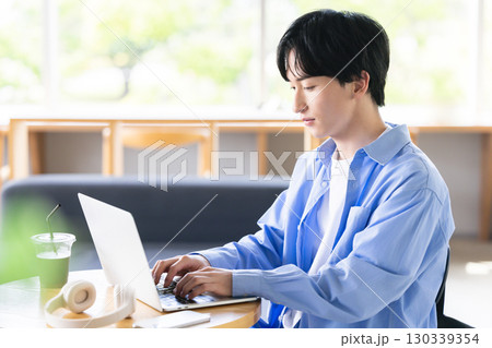 在咖啡館遠距辦公/工作的亞洲年輕女性