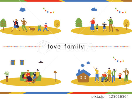 三代同堂家庭的插圖:爸爸媽媽抱著嬰兒,爺爺奶奶