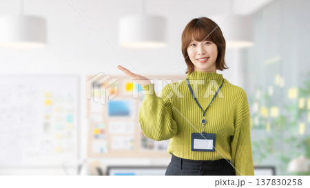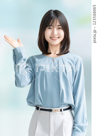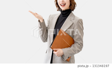 拿著手掌的商品,20多歲,30多歲的女商人,空空的手,
