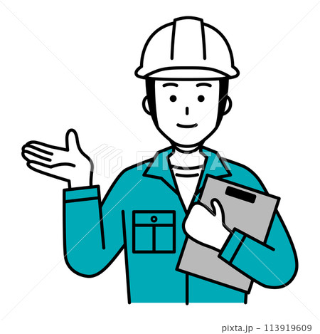 一個微笑的送貨員擺出指向姿勢的簡單插圖