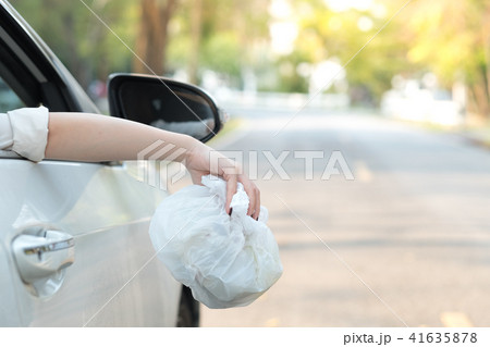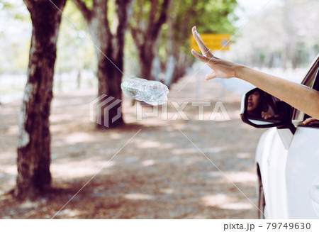 Woman hand throwing plastic bottle trash on the road,Environment and pollution campaign concept