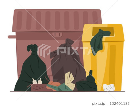Trash Can with Pile of Garbage Bags for Scattered Trash Concept Illustration