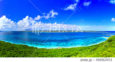 沖繩夏日藍天與大海 來馬橋與海