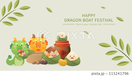 中國端午節,可愛俏皮的粽子卡通人物,蒸煮的糯米,向量插圖