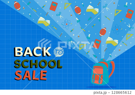 Back to school background theme stationery supplies elements vector illustration sale banner template