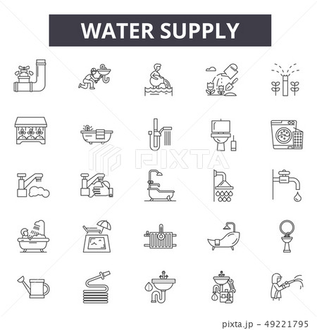 Water supply line icons for web and mobile design. Editable stroke signs. Water supply outline