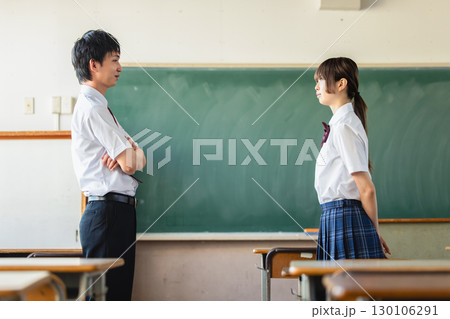 女學生和老師在課堂上交談(高中女生、高中生、國中生)