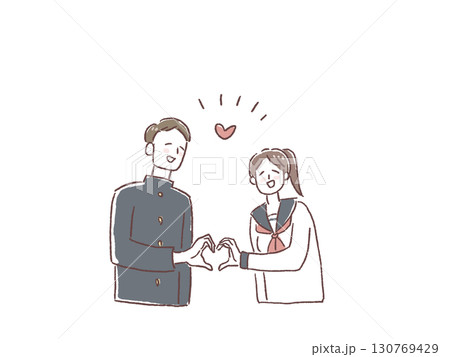 一個穿著水手服的女孩和一個穿著制服的男孩擺出心形姿勢,畫線