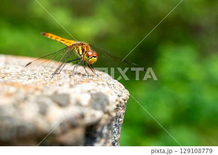 一隻蜻蜓在夏日陽光下休息翅膀