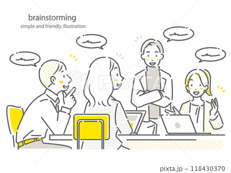 人們在商務會議上進行討論 — 簡單時尚的線條畫插圖