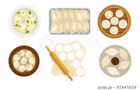 Set different dumplings of traditional cuisines, vector illustration isolated.