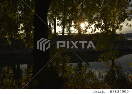 金益裕陽天柏,陽光照射的森林,塔阿河般的新井加瓦里里橋獨立。