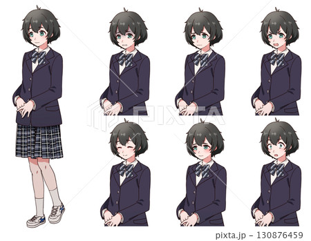 一組穿著制服的膽怯的黑髮女孩的面部表情