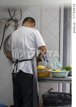 廚房,廚師,切馬鈴薯,キッチン、シェフ、カットポテト、Kitchen, chef