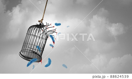 The sacrifice for freedom concept represents the painful and violent struggle to achieve liberty and democracy as an abstract concept with bloody feathers