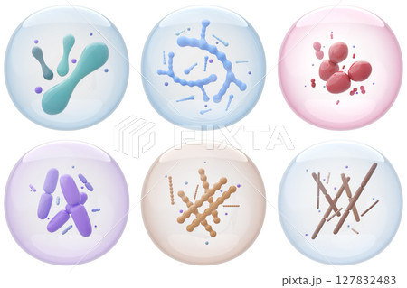 多種有益細菌和乳酸菌的集合。以腸道健康和免疫為主題的 3D 插圖。