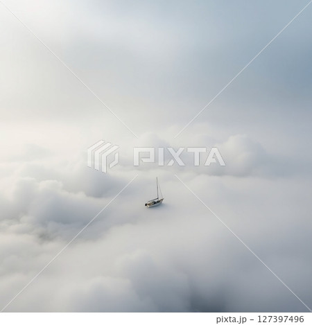 一艘船漂浮在天空中的奇幻風景圖像