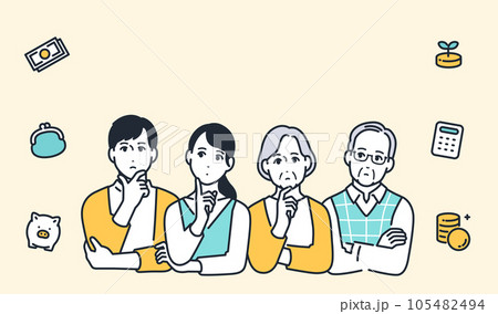 一個思考金錢的家庭的簡單矢量圖素材