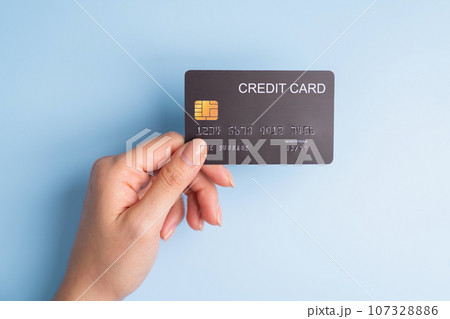 A close up of a woman holding a bankcard, demonstrating cashless payment and secure fund transfer
