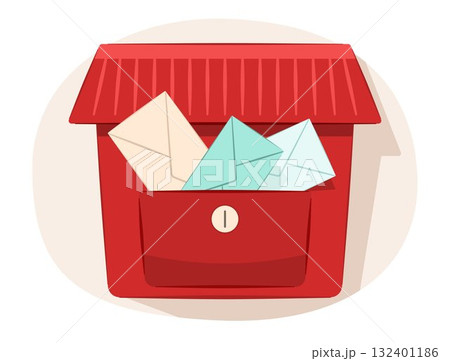 Red Mailbox with Post Envelope Inside for Postal and Correspondence Concept Illustration Clip Art