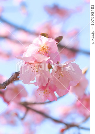 早開的修善寺冬櫻在藍天的襯托下閃閃發光