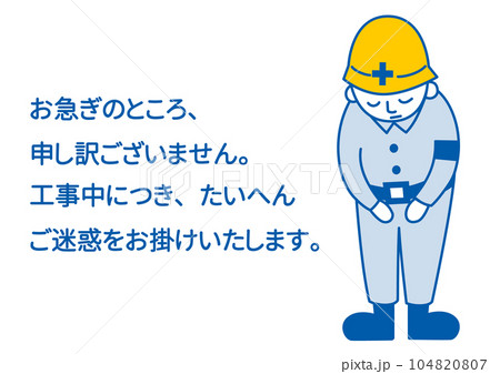 建築招牌 男性工地工人鞠躬道歉的插圖以及正在施工的資訊招牌圖示素材