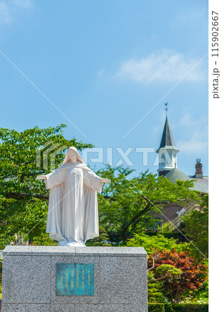 北斗市特拉普修道院的三木露夫詩碑(特拉普修道院的正門在左後方)