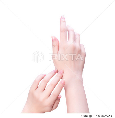 女手剪切路徑乳液塗片治療防護皮膚白底修剪脊柱剪切路徑