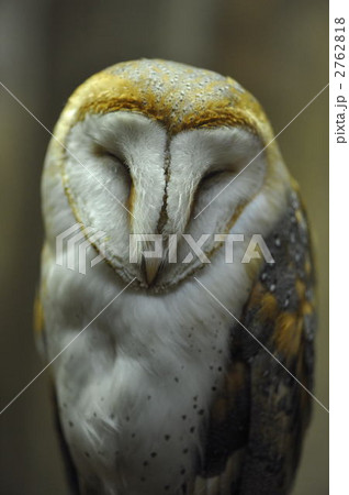 一隻穀倉貓頭鷹閉著眼睛打盹