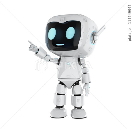 Cute and small artificial intelligence personal assistant robot finger point isolated