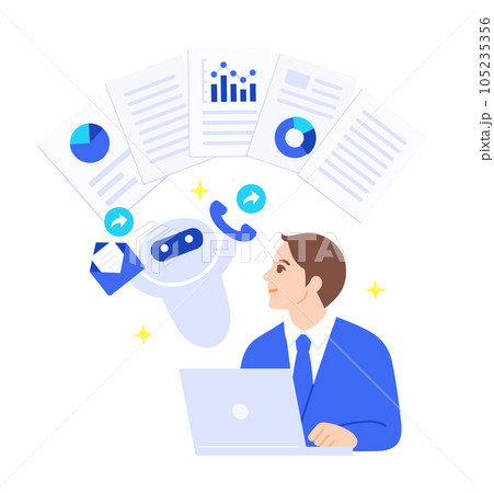 協助營銷人員活動的人工智能。營銷自動化圖像插畫素材。