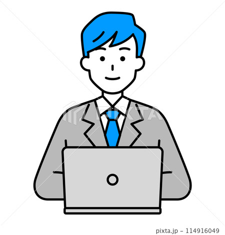 一個穿著西裝的男人在筆記型電腦上工作