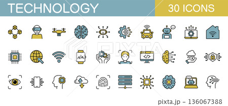 科技圖示集:IT、人工智慧、智慧家居、無人機等(彩色)