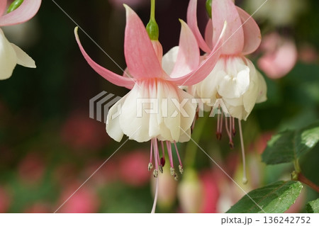 Beautiful Delicate Pink and White Fuchsia Flowers Bloom