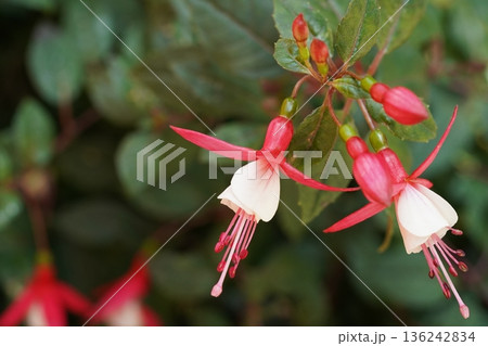 fuchsia, Fuchsia hybrid or Fuchsia Magellanica or Hybrid fuchsia or Ladys Eardrops or Onagraceae or red and white flower