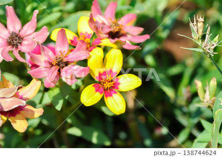 Zinnia or Zinnia angustifolia or Asteraceae and Zinnia Profusion Profusion Red Yellow Bicolor or Zinnia x hybrida Profusion