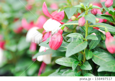 close up of beautiful fuchsia flowers in the garden