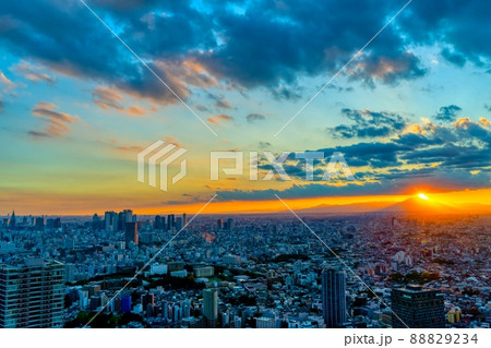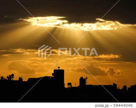 從Zushi海岸採取的Katase Enoshima附近的天使梯子