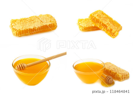 Set of sweet honeycomb isolated on white background, honey products by organic natural ingredients concept.