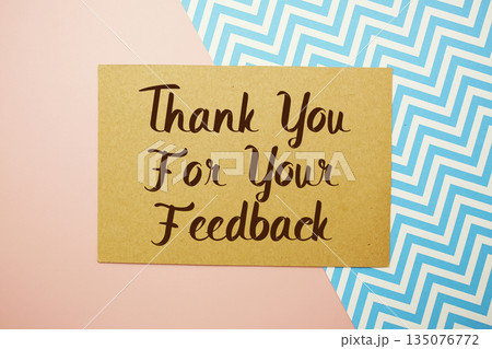 Thank you for your Feedback text written on notepad with alarm clock on pink background