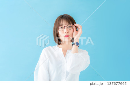 (上半身正面)一名戴眼鏡的書呆子看到令人難以置信的一幕後嚇得臉色發青。